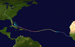 908 mbar (hPa; 26.81 inHg) (La Décima mas baja en el Atlántico). |